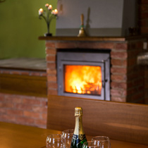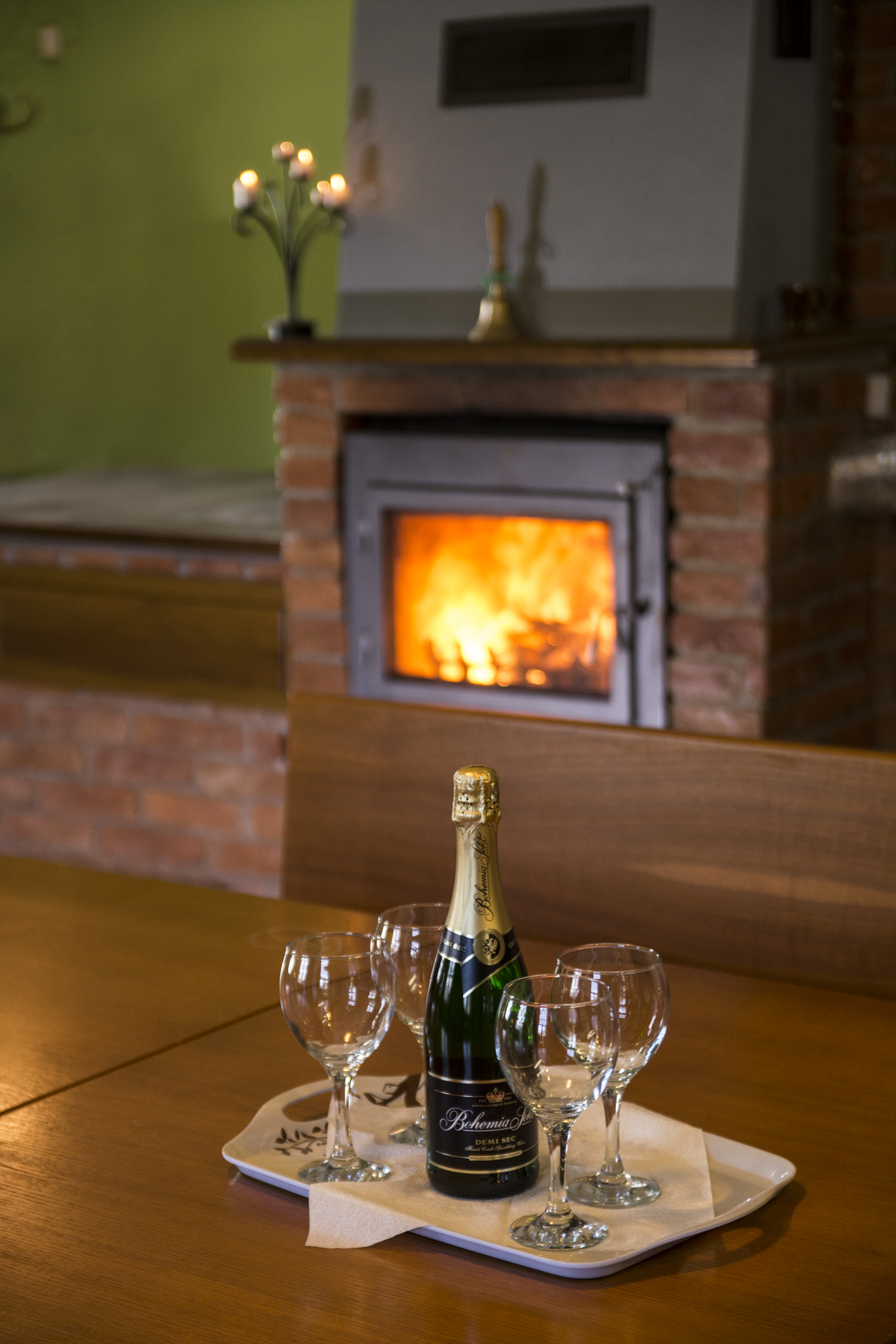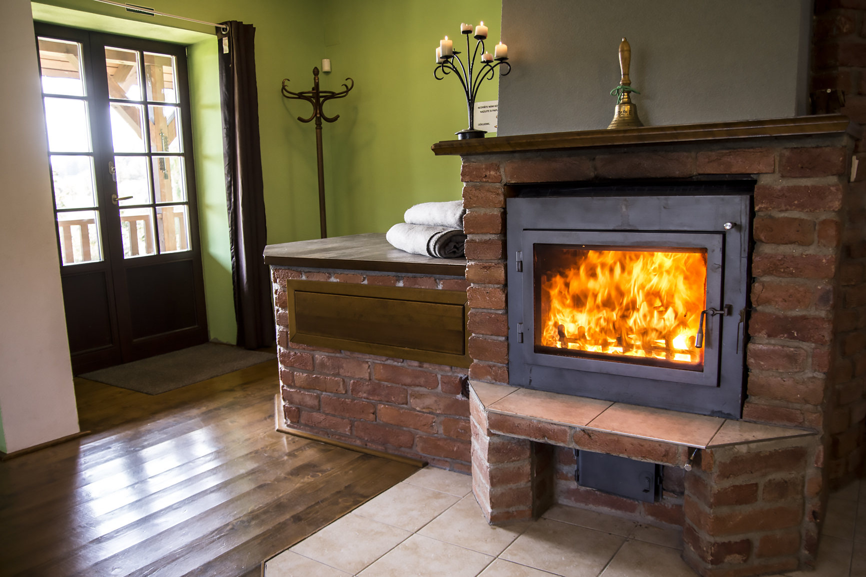 Hlavní vytápění chaty je centrálním krbem s možností přitápění elektrickými přímotopy a akumulačními kamny.