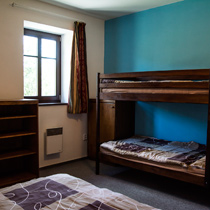 V patře jsou čtyři pokoje z toho v pokojích č. 1, 2 jsou k dispozici 1 x patrová postel + 1 x manželská postel a v pokojích č. 3 a 4 jsou k dispozici 1 x manželská postel + 2 x jednolůžková postel. Možnost přistýlky ve společenské místnosti (2x rozkládací gauč). K dispozici dětská postýlka. Dále se v patře nachází WC a koupelna s umyvadlem, sprchovým koutem a koupelnovým nábytkem.